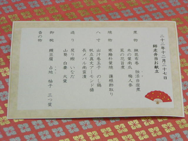 お客様一人ひとりにお品書を手渡ししていつもと違う演出に。 「おいしかったよ」の声を多くのお客様からいただきました。