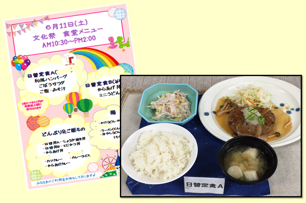 文化祭の日もTABLE FOR TWOメニューを提供しました。多くの人にメニューを購入していただき、大好評でした!!