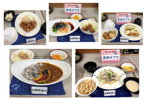 カロリーが800kcal程度、栄養バランスのとれた、野菜をたくさん使用したメニューを実施。野菜が苦手な方にも食べていただけるよう、工夫して調理しています。